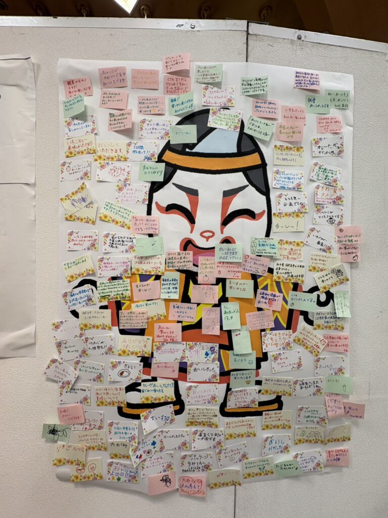 さらに、購入者がカレーの感想を付箋に書いて貼る企画も実施されたようで、壁一面がメッセージで埋まったとのことです!