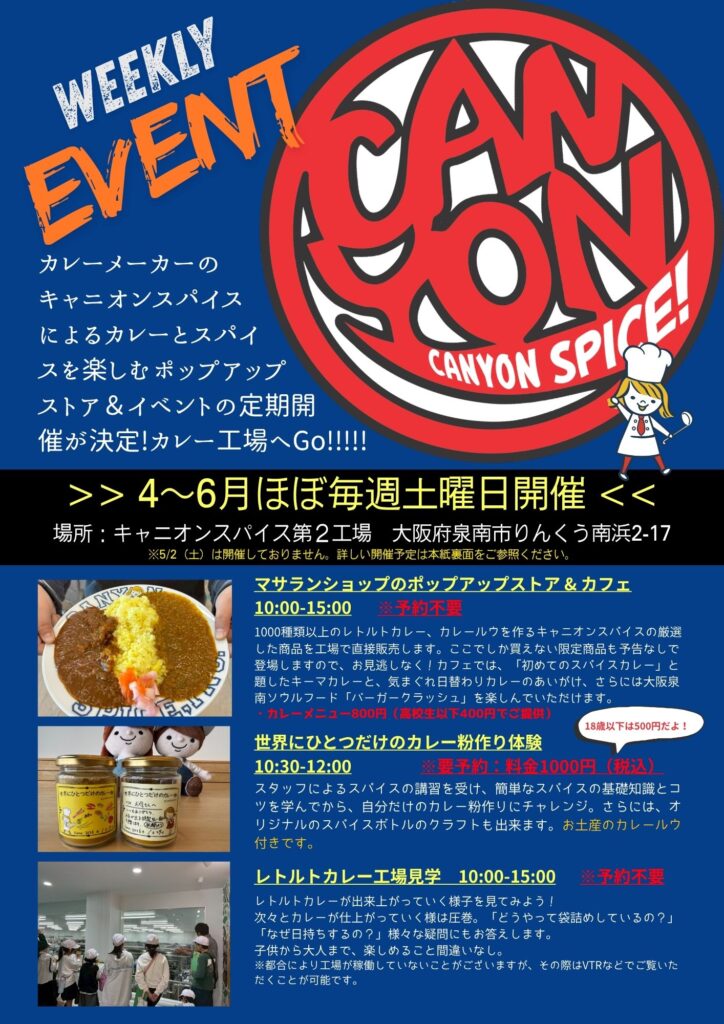 キャニオンスパイス第2工場では、毎週土曜日にイベントを開催中です。