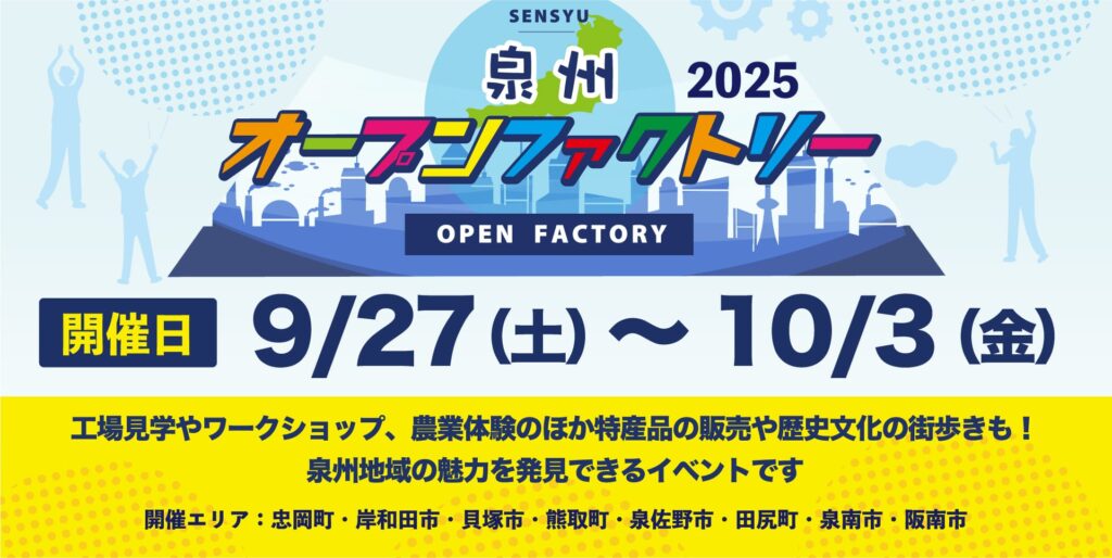 泉州オープンファクトリーは、大阪・泉州地域の企業が工場や事業所を一般開放して、ものづくりの現場を体験できる特別なイベント。普段は見られない製造現場や、職人の技術に触れられる貴重な機会として、毎年多くの方が参加されています。