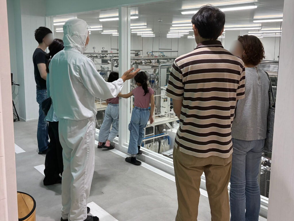 プログラムはまず、工場見学からスタート!ガラス越しに広がる製造現場の清潔さと設備に、みなさん一様に驚かれました。