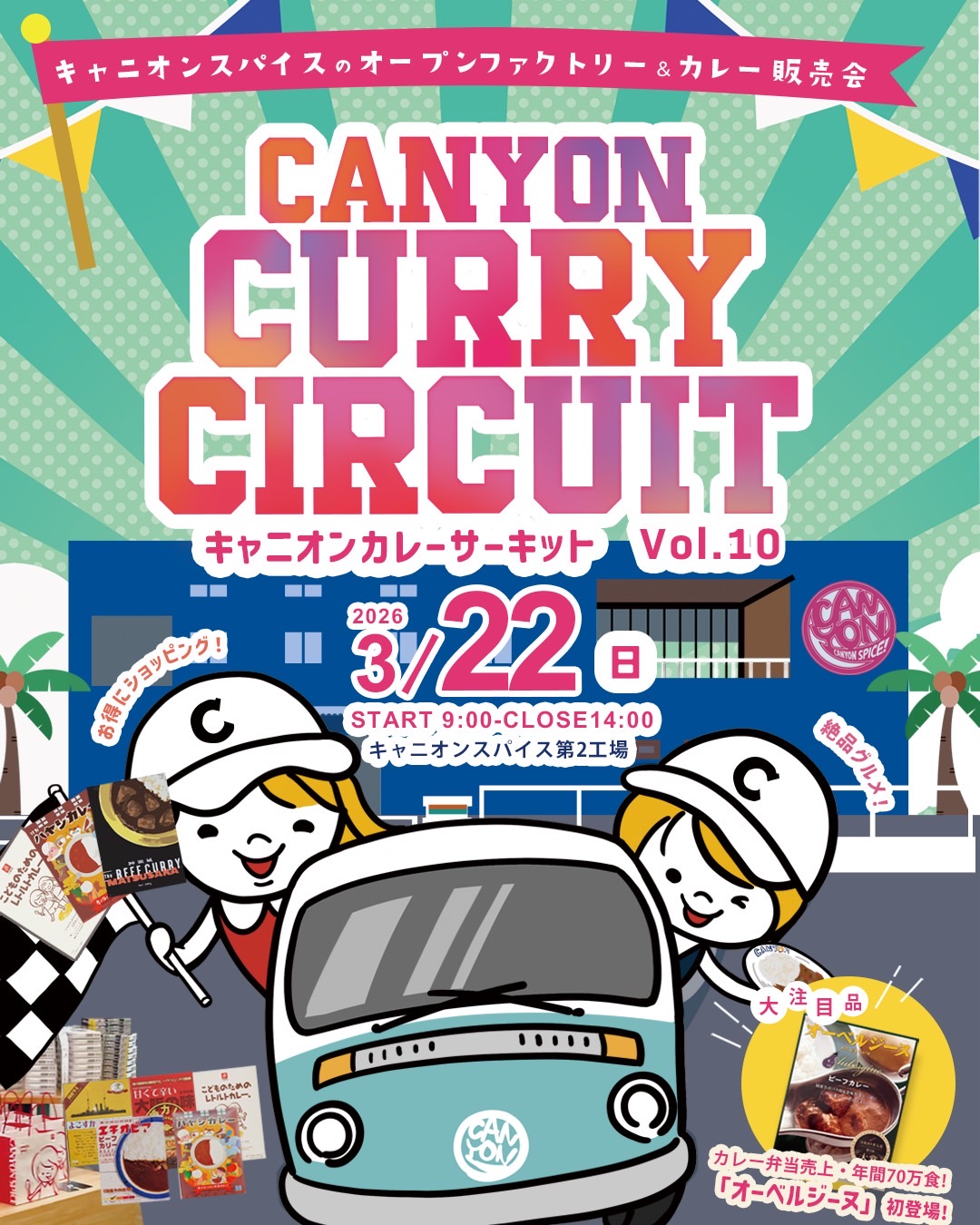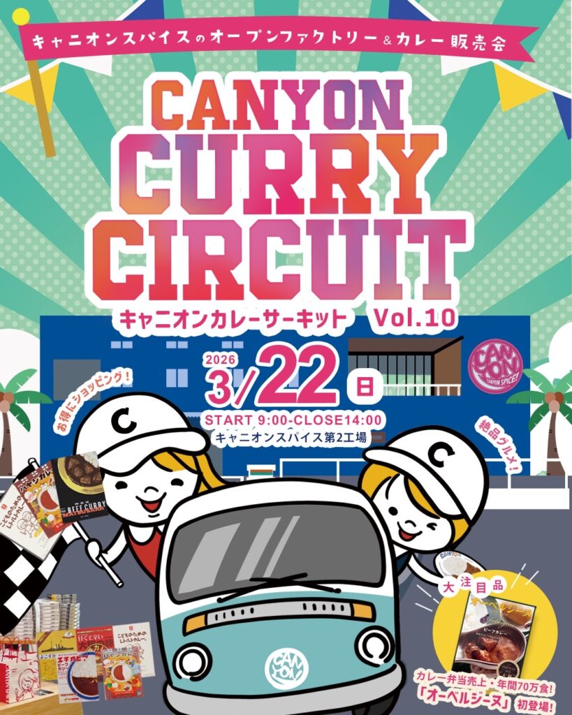 📅 2026年3月22日(日) 🕘 9:00 START ~ 14:00 CLOSE 📍 キャニオンスパイス第2工場