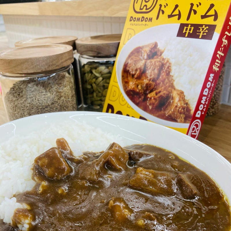 キャニオンスパイス営業マンが東京出張の際に訪れていた新橋の居酒屋。コロナ過で長らく訪れていない間にその居酒屋の女将さんが何故かドムドムバーガーの社長になっていた!?突然お電話をいただいた時に相談を受けたのは、「期間限定でオープンしたドムドムカレーをレトルトカレーとして残したい」という内容。そしてここに完成です。