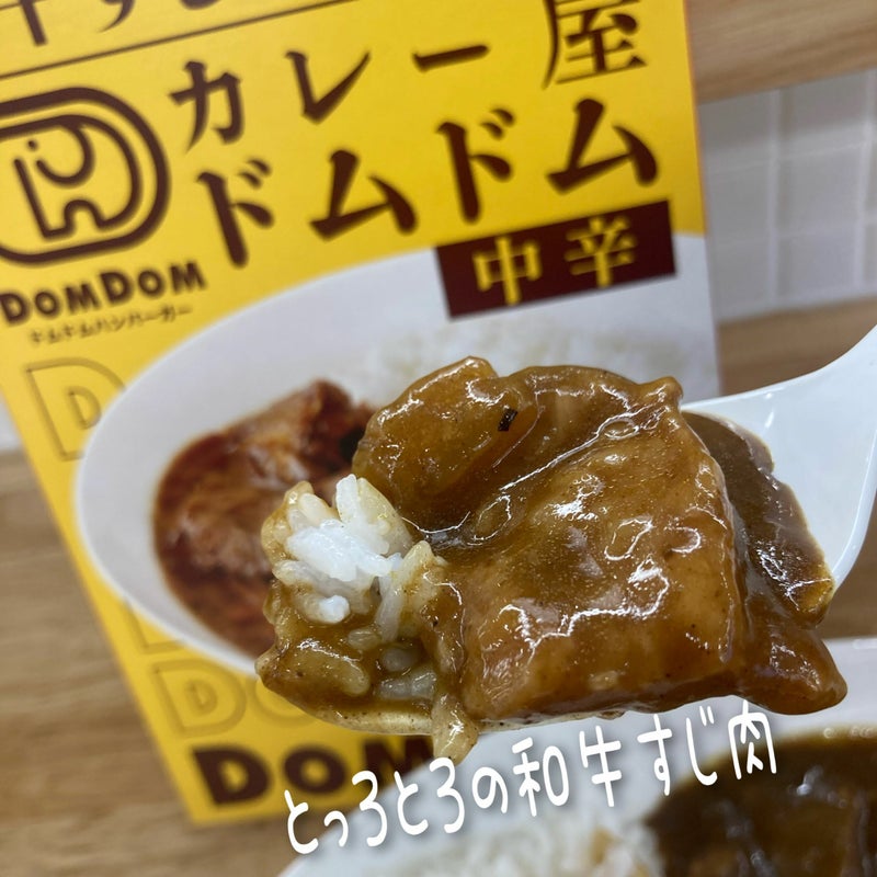 ドムドムカレーは、「ハンバーガーのパティを作るときに出る端材が勿体ない」というところから始まっており、そのすじ肉をふんだんに使用した「和牛すじ肉カレー」として開発されました。本品も同様で、トロトロに柔らかくなるまで煮込んだ和牛の牛すじを具材に、カレーソースは居酒屋の女将さんならではの、家庭的な雰囲気のみんなが間違って大好きで、毎日でも食べられるような味わいです。