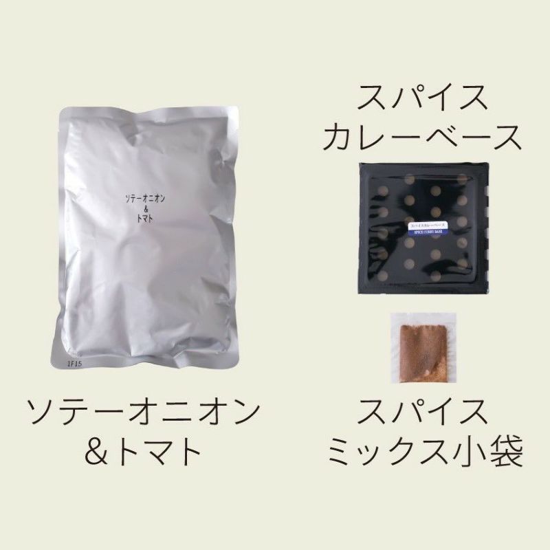 | 原材料 | 【スパイスカレーベース】食用油脂(豚脂)(国内製造)、コリアンダー、クミン、食塩、ガーリックパウダー、ウコン、オニオンパウダー、醤油パウダー、かつおパウダー、カスリメティ、チキンエキスパウダー、メースパウダー、赤唐辛子、(一部に小麦・豚肉・鶏肉・大豆を含む) 【ソテーオニオン&トマト】ソテーオニオン(国内製造)、トマト・ピューレーづけ 【スパイス小袋】ブラックペッパー、赤唐辛子、コリアンダー、クローブ、カルダモン |