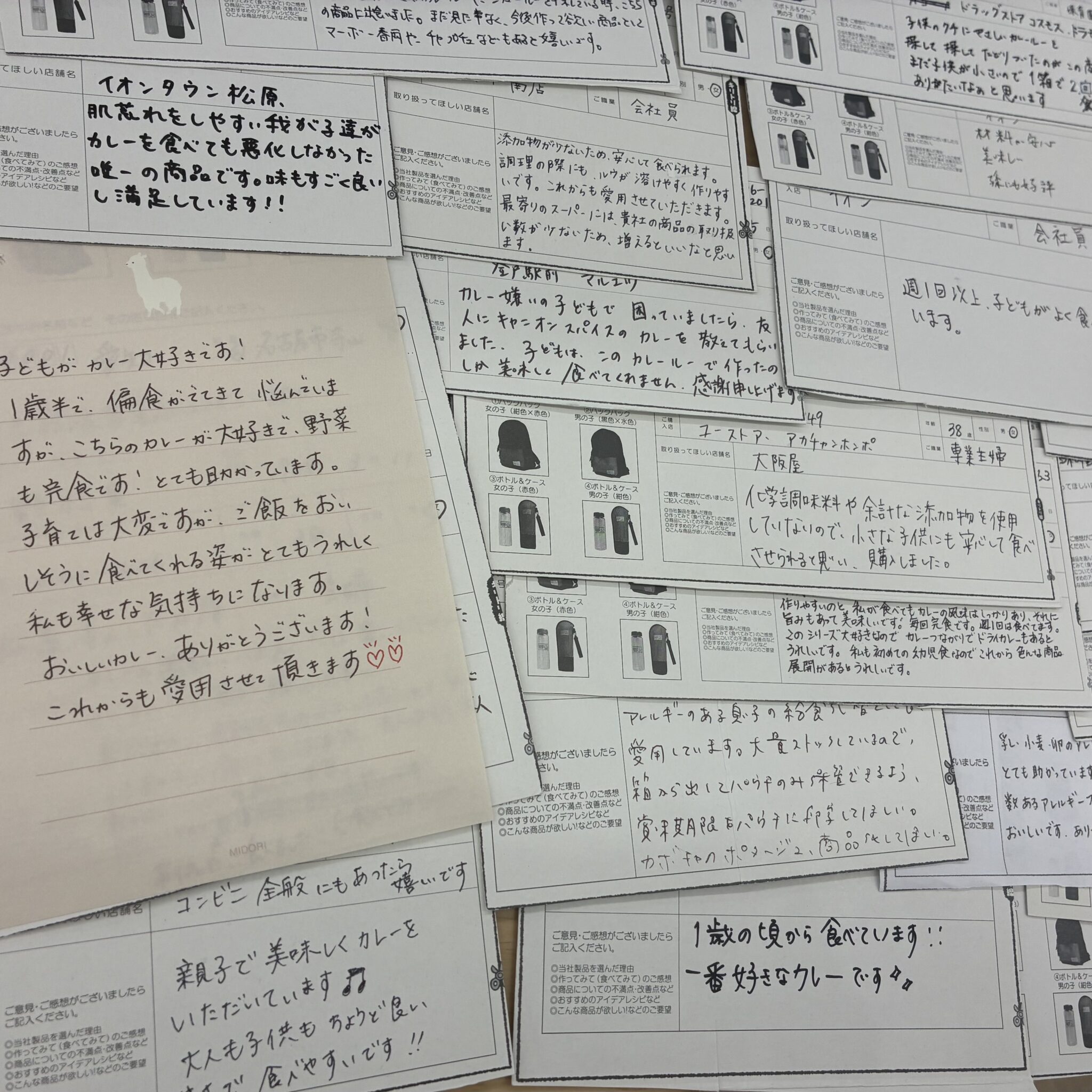 販売が少しずつ伸び始めた頃、アンケート用紙であるコメントをいただきました。