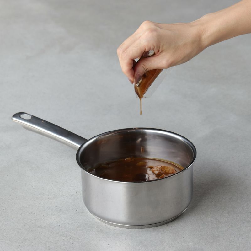 ルウ単体ではスパイス感とその旨味がストレートに感じられ、別添のフルーツソースを加えるとそこに酸味とほのかな甘みが加わる変化をお楽しみいただけます。